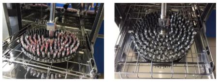 ②器皿外表面清洗(頂部和底部均安裝旋轉噴淋臂,噴臂具有優化排布的噴嘴,實現清洗無死角);