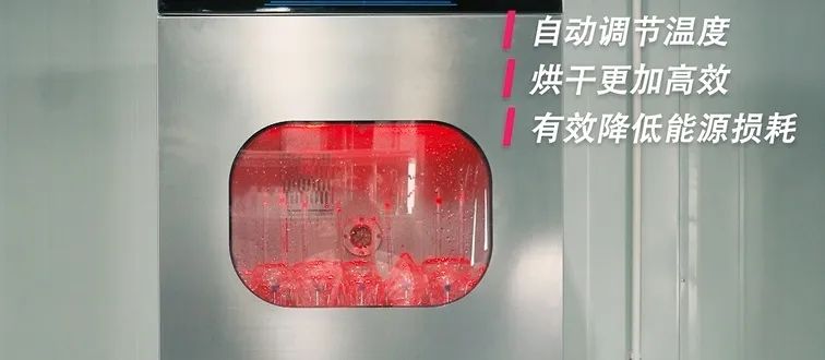 此外,水溫高,清洗更潔凈。洗瓶機(jī)清洗水溫可高達(dá)90度(以1度為單位可調(diào)),而人體對(duì)于水溫的承受能力很有限。并且洗瓶機(jī)洗完后瓶皿會(huì)自動(dòng)烘干,能有效避免二次污染。