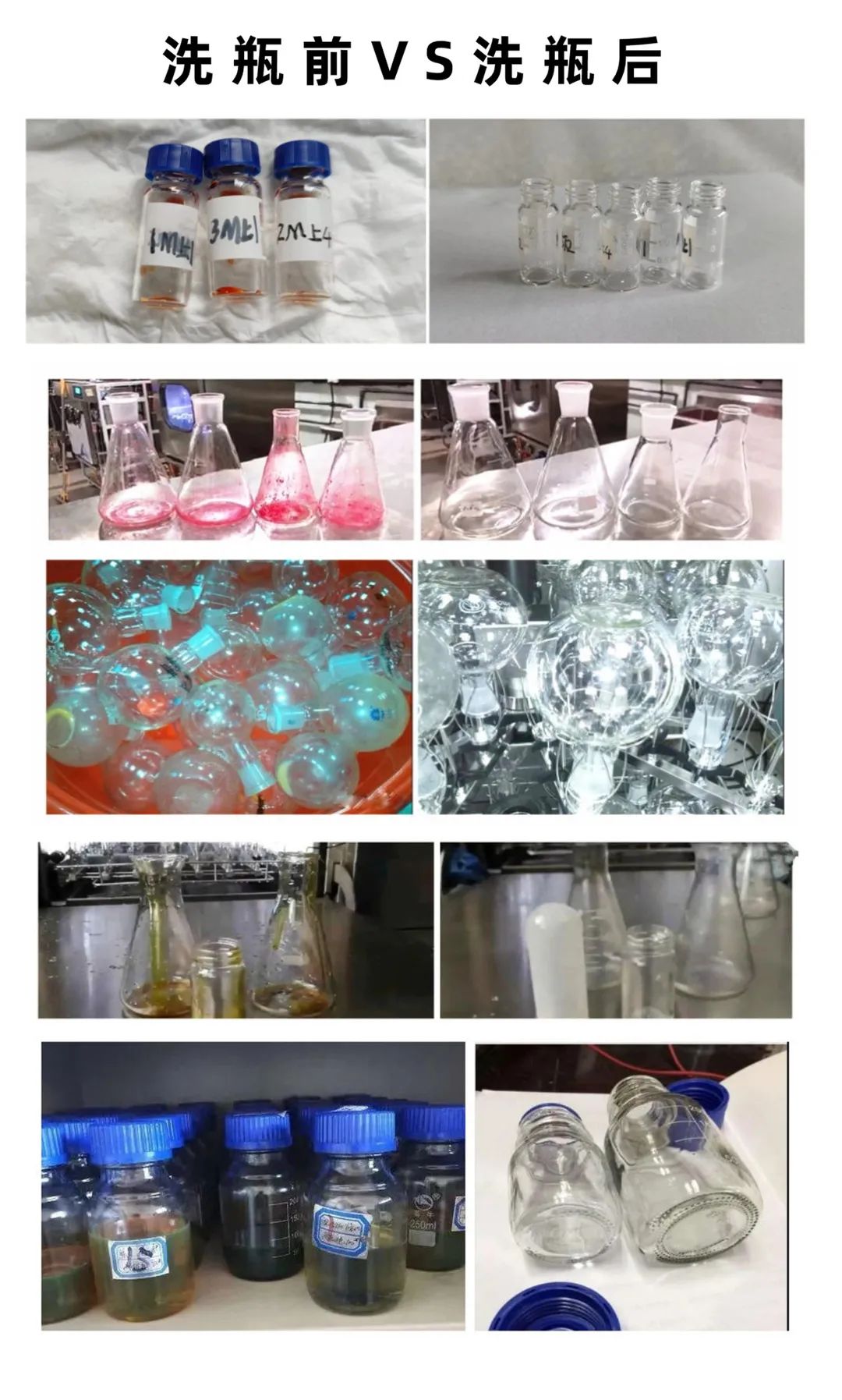 我們先看看圖,日常實(shí)驗(yàn)用的瓶瓶罐罐,如:進(jìn)樣瓶、取樣瓶、三角瓶、培養(yǎng)皿、移液管等,都可以洗凈。而且污漬不管是培養(yǎng)基、油污類(lèi)、顏料/染料/色素類(lèi)、血液/干血漬類(lèi),還是有機(jī)溶劑、小分子類(lèi)等都能被它輕松洗凈。